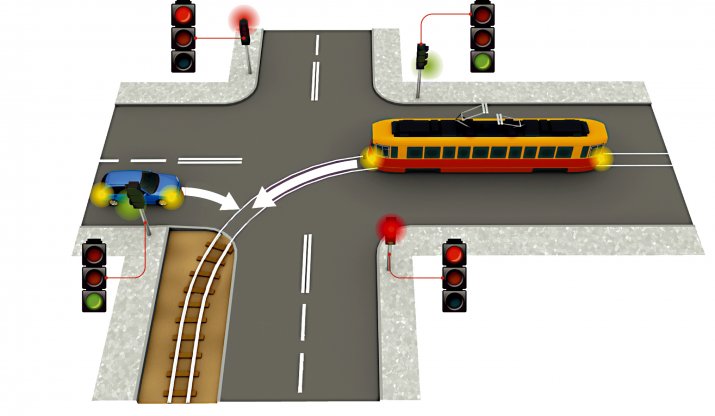 Gdy pierwszeństwo określają znaki, stosują się do nich wszyscy — jeśli wynika z nich, że obaj macie pierwszeństwo, przejedzie tramwaj pierwszy. Przy sygnalizacji każdy odczytuje swoje światła (dla tramwajów służą sygnalizatory ST/STK/STT/SB).